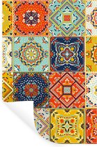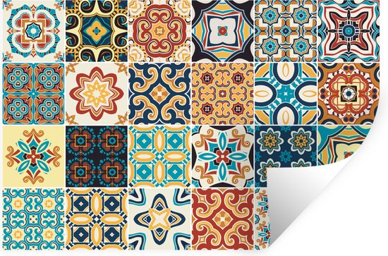 Stickers muraux - Sticker Foil - Fleurs - Vintage - Motif - Blauw - Oranje - 120x80 cm - Film Adhésif - Stickers muraux Muraux Chambre Enfant - Papier Peint Auto Adhésif