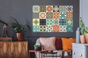 Stickers muraux - Fleurs - Vintage - Motif - Blauw - Oranje - Autocollants