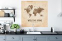 Stickers muraux - Welcome Home - Carte du Wereldkaart - Citation - 100x100 cm - Film Adhésif XXL
