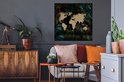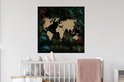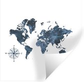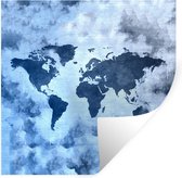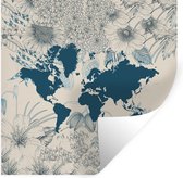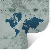 Stickers muraux - Wereldkaart - Fleurs - Blauw - 80x80 cm - Film adhésif
