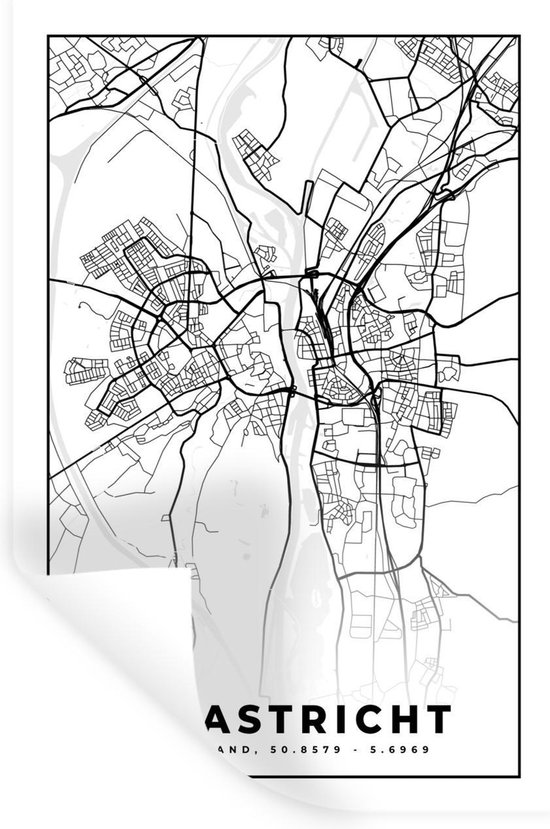 Stickers Stickers muraux - Carte - Maastricht - Zwart - Wit - 80x120 cm - Feuille adhésive