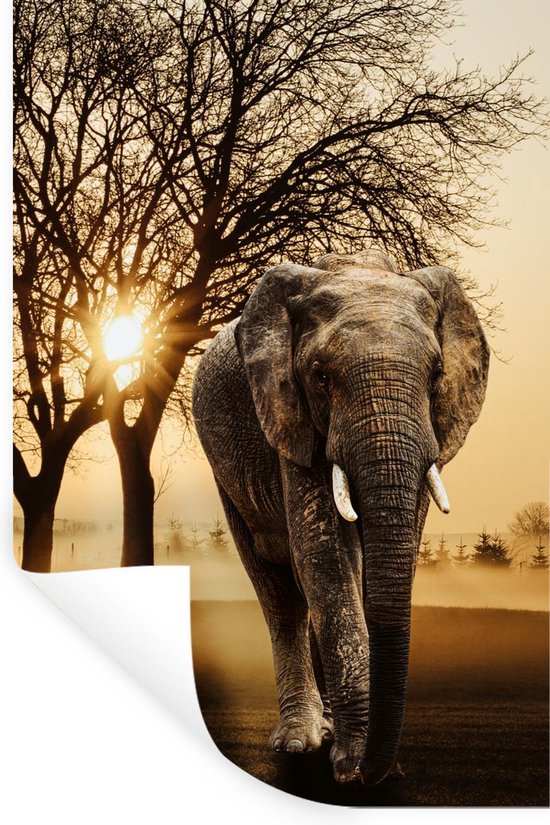 Stickers Stickers muraux - Éléphant - Arbre - Soleil - 20x30 cm - Feuille adhésive