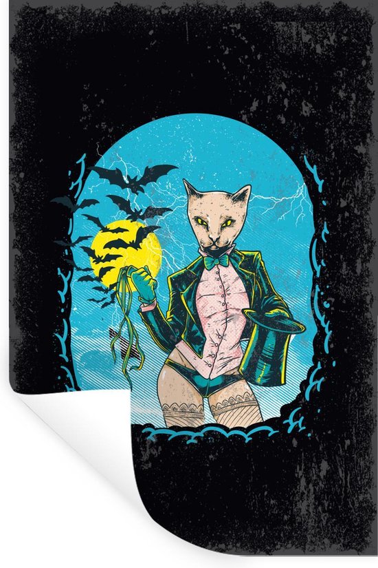 Stickers Stickers muraux - Vintage - Chat - Chapeau - 40x60 cm - Film adhésif