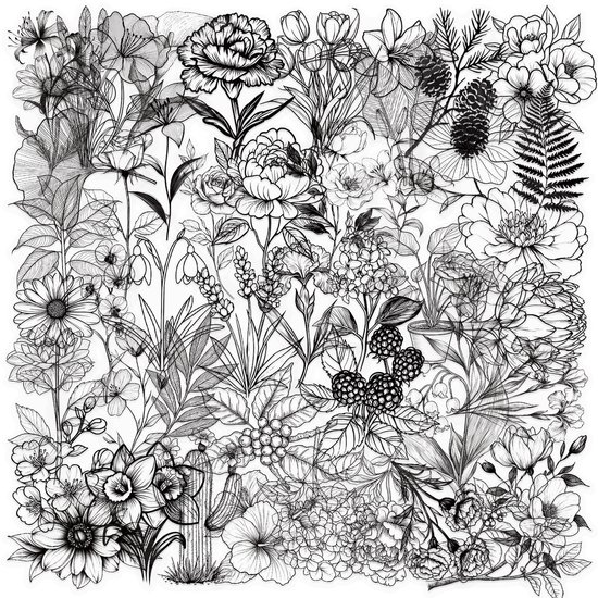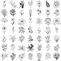 Stickerset Fleurs Zwart/ Wit - Set avec 58 stickers Fleurs