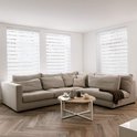 Le store double se caractérise par son aspect très noble avec de belles rayures de 7,5 cm de large. Cet élégant accroche-regard joue avec la lumière et est idéal pour adoucir la lumière. En plus de protéger contre la lumière du soleil, le double store enrouleur offre une intimité optimale en empêchant la perspicacité. Le volet roulant a deux bandes parallèles alternées qui sont installées dans une cassette de protection. Le tissu est alternativement opaque et transparent, ce qui permet aux réglages individualisés de doser de manière optimale la lumière incidente pour contrôler la quantité de lumière de la pièce.