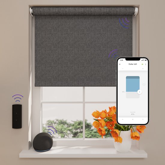 Ce store enrouleur électrique est doté d'un tissu occultant de la plus haute qualité. Le store enrouleur est livré avec un moteur MotionBlinds CMD-02-P, qui vous permet de bénéficier d'un confort et d'une facilité d'utilisation ultimes. Le tissu est 100% occultant, a un aspect naturel et offre une intimité totale. Les supports de montage minces sont faciles à assembler. Vous pouvez commander ce store enrouleur en plusieurs couleurs et tailles. Soyez malin et donnez un coup de peps à votre intérieur avec ce store enrouleur malin !