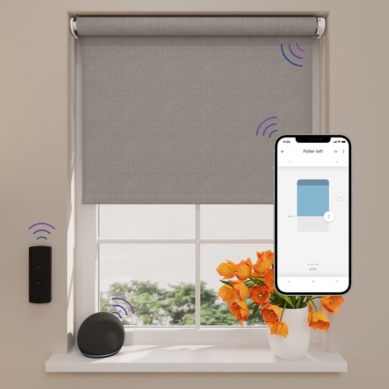 Le tissu a une structure fine et naturelle et est composé à 100% de polyester. Les supports de montage et le tube du store enrouleur sont en aluminium de haute qualité. Les supports de montage sont recouverts de capuchons en plastique. Le moteur est fait de matériaux de haute qualité et a une grande capacité de batterie. Le moteur dispose également du dernier logiciel, qui est fréquemment mis à jour.