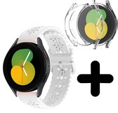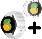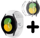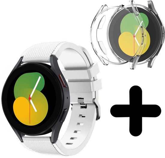 Strap-it Samsung Galaxy Watch 5 - Bracelet silicone 40mm (blanc) - Bracelet silicone Galaxy Watch 5 40 mm - Incl. protection d'écran protecteur d'écran - Protecteur d'étui de protection d'étui - Étui rigide transparent à couverture complète