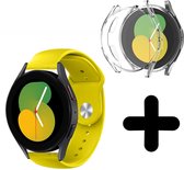 Strap-it Samsung Galaxy Watch 5 - Bracelet silicone / cuir 40mm (vert) - Bracelet silicone Galaxy Watch 5 40 mm - Incl. protection d'écran protecteur d'écran - Protecteur d'étui de protection d'étui - Étui rigide transparent à couverture complète