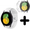 Strap-it Samsung Galaxy Watch 5 - Bracelet sport 40mm (blanc) - Bracelet silicone Galaxy Watch 5 40 mm - Incl. protection d'écran protecteur d'écran - Protecteur d'étui de protection d'étui - Étui rigide transparent à couverture complète