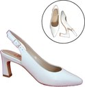 Vous cherchez des talons slingback en cuir blanc élégants grande taille 44? Escarpins à bride arrière en cuir Witte avec de nouveaux talons tendance et un nez pointu. Vous pouvez porter ces slingbacks comme chaussures de mariage lors de votre mariage. Ensuite, vous pouvez porter ces escarpins de mariage sous une jolie robe, car le blanc cassé est également une excellente couleur à combiner avec de nombreuses couleurs à la mode. Chez Stravers Shoes, vous trouverez une collection unique de chaussures pour femmes dans les grandes pointures 42 à 48. Astuce ! Découvrez également ces chaussures femme grande taille !