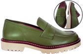 Stravers – Mocassin Trendy à talon plat en Cuir vert Taille 44 Chaussures à enfiler pour femme grande taille