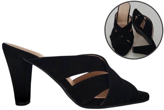 Stravers - Mule de Luxe en daim à talons hauts pour femme, pointure 44, grande taille, Zwart
