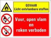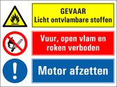 Substances hautement inflammables, flamme nue et interdiction de fumer, panneau d'arrêt du moteur 280 x 210 mm - plastique