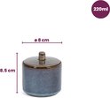 Conservez votre sucre dans ce sucrier Quintana de Cosy & Trendy. Ce sucrier en faïence assure la longue durée du sucre. Le matériau rend le pot adapté au lave-vaisselle. En raison de la conception simple et de la combinaison de couleurs spéciale, ce pot attire immédiatement le regard. Combinez le sucrier avec d'autres produits de la collection et créez un joli ensemble.