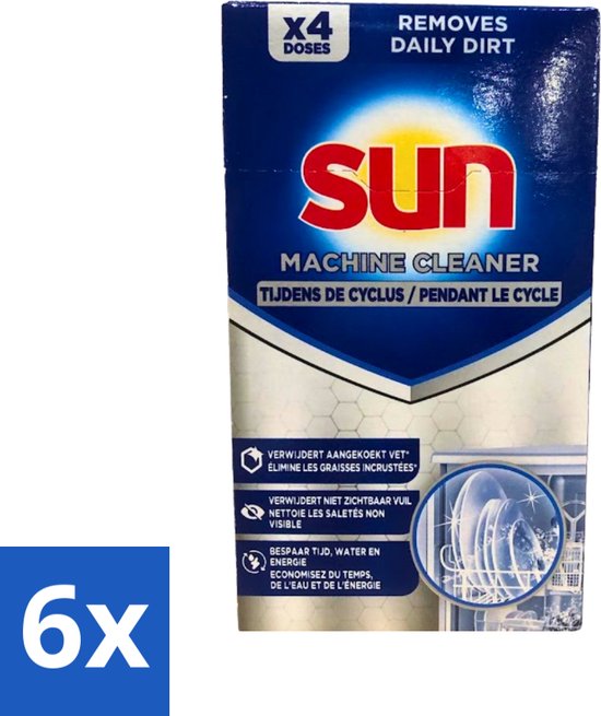 Sun - Cleaner pour machine - In-Wash - Nettoyant pour lave-vaisselle - 4 lavages - Pack économique - 6 pièces