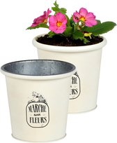 Sunnydays Seau/pot de fleurs/pot de fleurs - zinc - blanc ivoire - D23 x H22 cm