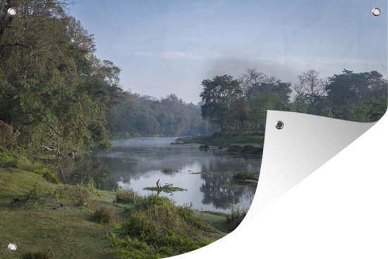 Sunrise by the river in the Chitwan National Park in Nepal Garden poster 180x120 cm - Toile de jardin / Toile d'extérieur / Peintures d'extérieur (décoration de jardin) XXL / Groot format!