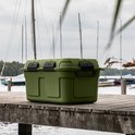 Belle boîte robuste avec une bonne fermeture étanche. En principe, il peut être utilisé pour tout. Je l'utilise pour le camping et le outdoor. Peut prendre un coup. À première vue, cela peut sembler un peu cher, mais si vous le comparez à d'autres marques comme Yeti, les prix sont en fait assez raisonnables. Hautement recommandé.