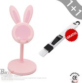 Borvat® - Support de téléphone en forme de lapin mignon pour bureau - Rose + cadeau gratuit de brosse pour clavier 2 en 1 - Compact et pratique