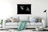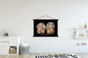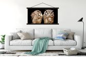 Support mural pour affiche inclus. Affiche 150x100 cm - Affiche scolaire - Hibou - Vogel - Zwart - Affiche textile - Lattes noires