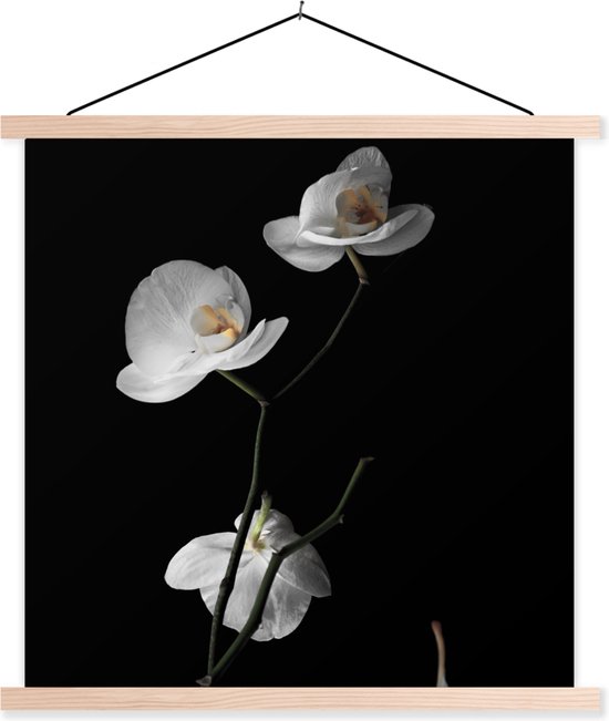 Support pour affiche avec affiche 40x40 cm - Affiche scolaire - Orchidée - Fleurs - Zwart - Wit - Nature morte - Affiche textile - Lattes vierges
