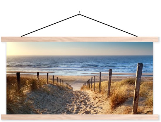 Support pour affiche avec affiche 90x45 cm - Affiche scolaire - Plage - Mer - Nederland - Dunes - Soleil - Affiche textile - Lattes vierges