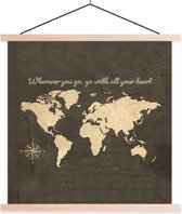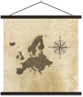 Support pour affiche avec affiche 90x90 cm - Affiche scolaire - Carte de Europe - Vintage - Rose des vents - Affiche textile - Lattes vierges