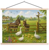 Support pour affiches avec affiche 120 x 90 cm - Affiche scolaire - Oie - Animal - Couleurs pastel - Affiche textile - Lattes vierges