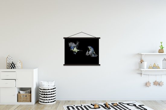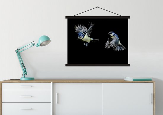 Support pour affiches avec affiche 60 x 45 cm - Affiche scolaire - Vogels - Ressorts - Zwart - Affiche textile - Lattes noires
