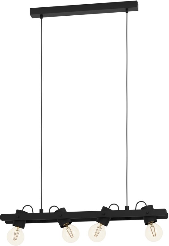 Suspension EGLO Plimsoll - E27 - 77 cm - Zwart - Acier/Bois