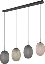 Suspension LED - Éclairage suspendu - Torna Feget - Culot E27 - 4 lumières - Rectangulaire - Zwart mat - Métal