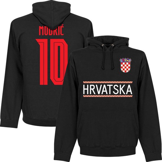 Magnifique sweat à capuche de l'équipe Croatie Modric (10) de Retake pour enfants. Ce pull est tout à fait dans le style avec la couleur de la chemise Croatie et est principalement noir avec un col rond. Au centre du maillot de la Croatie se trouve le naam du pays: HRVATSKA.