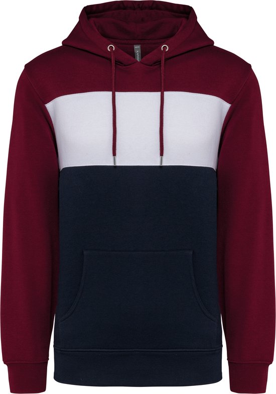 Sweat à capuche unisexe tricolore avec capuche marque Kariban Vin/ Wit/Bleu Foncé - XL