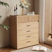 Sweiko Commode à 6 tiroirs, coffre-fort, Fonction de rangement, pour Chambre et salon, Aggloméré E1, Wit et chêne