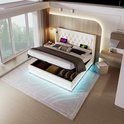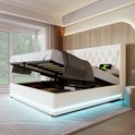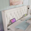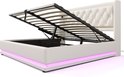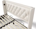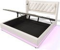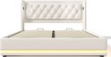 Sweiko Lit Oreiller Doux Lit Simple 160x200 cm, Lit de Rangement Hydraulique en PU Wit , Tête d'oreiller Douce avec Fonction de Chargement USB Type-C , Fonction LED 3 Côtés (Geen de Matelas)