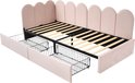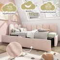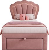 Sweiko Lit rembourré Lit simple Lit rangement avec tiroirs Canapé-lit en velours 90x200cm Lit jeune et lit adulte avec cadre plat en nouilles, Rose (sans matelas)