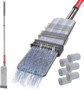 Balai plat en microfibre avec essoreur intégré - 147 cm, 6 tampons réutilisables pour un Nettoyage efficace des Sols