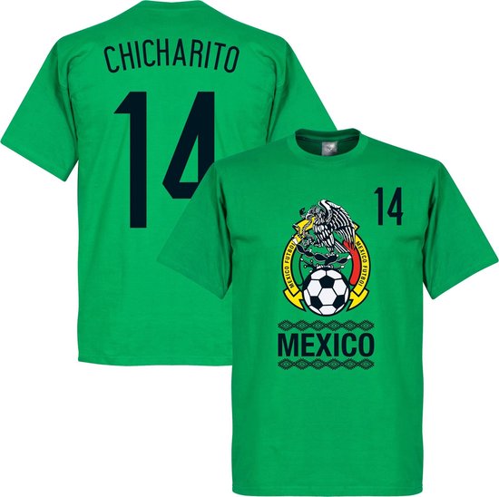 T-shirt Cool Mexico pour enfants de Retake avec imprimé Chicharito. Ce t-shirt est entièrement vert et contient un logo vintage de l'Association mexicaine de football au centre du maillot. Le nom du pays est également sur ce t-shirt. De plus, le t-shirt est équipé d'une impression noire du nom et du numéro du joueur vedette Chicharito (14). Le numéro de ce mexicain est à la fois sur le devant et le dos de la chemise. T-shirt idéal pour le vrai fan du Mexique ou ce joueur vedette. Parfait pour les vêtements de loisirs. 100% coton.