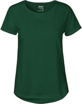 T-shirt à manches retroussées et col rond pour femme vert bouteille - S