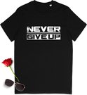 T shirt avec citation positive 'Never give Up' - T-shirt femme et homme avec texte - Tailles homme et femme (unisexe) S à 3XL - Couleur chemise : noir.