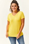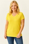 T-shirt Basic à manches courtes et col en V pour femme, taille 5XL, grandes tailles - Jaune