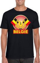 T-shirt Belgique avec drapeau noir sur poitrine pour homme - Chemise pays Belgique - Vêtement supporter S