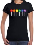 T-shirt Gay Pride pour femme en noir. La chemise présente des sucettes aux couleurs de l'arc-en-ciel. Portez cette chemise, par exemple, à la Gay Pride, lors du défilé des bateaux de la fierté sur les canaux d'Amsterdam ou à un autre événement LGBTI/LGBTIQ. Matière : 145 grammes, 100 % coton. Merk: Bellatio Decorations.