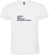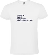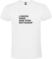 T-shirt blanc avec texte Londres, Paris, New York , Schuimlikkerveen Zwart Taille XS