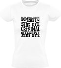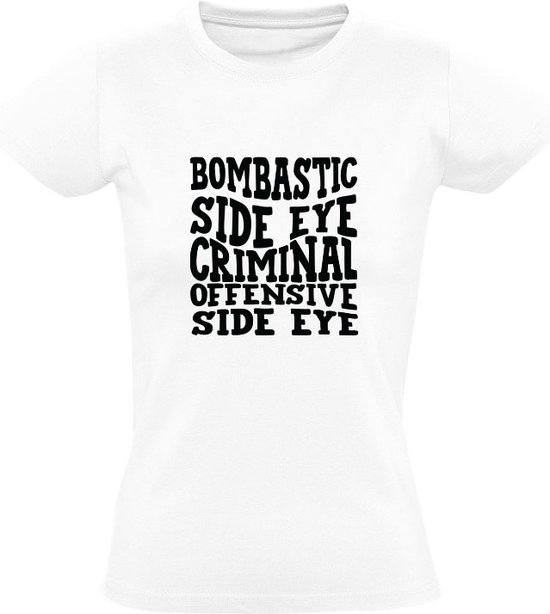 T-shirt Bombastic pour femmes avec œil latéral criminel et offensive| elle oeil | en colère | arrogant | tendance | attaque| grandiloquent | criminel | lettres sympas | Humour |