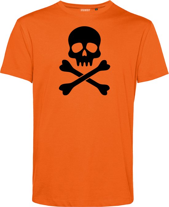 T-shirt crâne de pirate | Déguisement d'Halloween Adultes | Halloween | Mauvaise fête | Orange | taille S