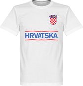 T-shirt élégant Croatie de Retake pour adultes. Ce t-shirt bleu marine a une impression des blocs emblématiques du maillot de football de l'équipe nationale croate. Dans ces blocs, le texte: «CROIRE» est incorporé. Sous ces blocs se trouve le texte: `` HVALA VETRENI. '' T-shirt parfait pour le vrai fan de Croatie. Joli à porter en toute décontraction. 100% coton.