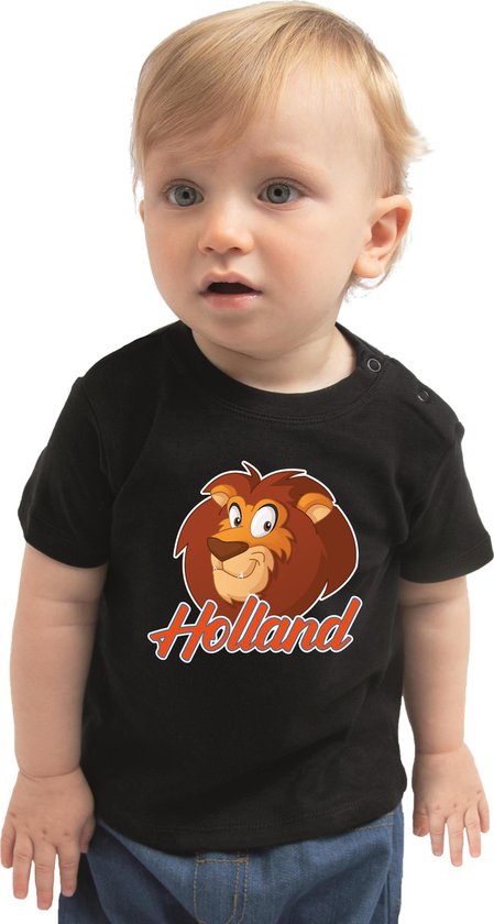T-shirt de fan Zwart pour bébé / tout-petits - Holland avec lion de bande dessinée - Supporter des Nederland - Koningsdag / Championnat d'Europe / Maillot de coupe du monde / outfit 92 (11-24 mois)