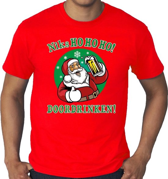 T-shirt de Noël de grandes tailles faux rien Ho Ho Ho, à boire, rouge pour homme. Cette chemise de Noël grande taille est imprimée avec le Père Noël tenant une chope de bière et le texte: Niks Ho Ho Ho, buvez. Matériel: 100% coton, qualité 145 grammes. Agréable à porter, par exemple, pour un verre de Noël.